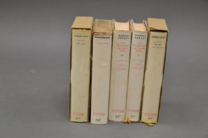 PLEIADE. (volumes de la). GIDE. Journal. 1889-1949, 2 volumes. Jaquettes, rhodoïds, étuis. - MONTHERLANT. Théâtre, 1954 ; jaquette (sans rhodoïd ni étui).– PROUST. A la recherche du temps perdu. Tomes 1 et 3. 1954. 2 volumes. jaquette (sans...