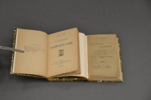havane, dos à fx-nerfs de filets dorés, première couverture conservée pour les « Souvenirs ». Editions originales de ces deux ouvrages. Les « Souvenirs d’auberge » sont agrémentés d’un envoi autographe signé de l’auteur à Arthur Meyer.