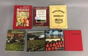 Roussillon, 1980 (sans jaquette). – LAROUSSE. Vins et vignobles de France. 2002. Grand in-8, cartonnage éditeur. – DOVAZ (Michel). Encyclopédie des crus classés du Bordelais. Paris, 1981. In-4, reliure éditeur, jaquette. - RENOY (Georges). Les mémoires du Bordeaux. Bruxelles, BAV, 1984. In-4, reliure éditeur, jaquette. Ensemble 7 volumes.