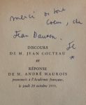 COCTEAU (Jean) — Discours de réception à l'Académie française et réponse de M. André Maurois.