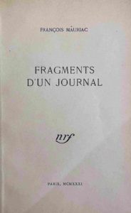 Fragments d'un journal. Paris, NRF, 1931. Plaquette in-8 de [2]-17 pp., brochée. Édition originale, tirée à très petit nombre.