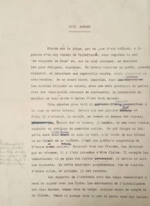 Dactylographie d'un article d'André Maurois sur Paul Morand comportant une vingtaine de corrections autographes de Maurois, mais également vingt-quatre lignes de corrections autographes de Morand.