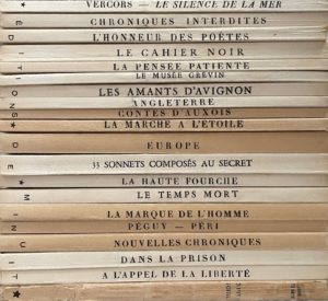 Détail des titres : Vercors [Jean Bruller]. Le Silence de la mer. – Chroniques interdites. – L'Honneur des poètes. – Forez [François Mauriac]. Le Cahier noir. – Thimerais [Léon Motchane]. La Pensée patiente. – François la Colère [Louis Aragon]. Le Musée Grévin. – Laurent Daniel [Elsa Triolet]. Les Amants d'Avignon. – Argonne [Jacques Debû-Bridel]. Angleterre (d'Alcuin à Huxley). – Auxois [Édith Thomas]. Contes. (Transcrit du réel). – Vercors [Jean Bruller]. La Marche à l'étoile. – Europe. L'Honneur des poètes II. – Jean Noir [Jean Cassou]. 33 sonnets composés en secret. – Vivarais [Pierre Bost]. La Haute fourche. – Minervois [Claude Aveline]. Le Temps mort. – Mortagne [Claude Morgan]. La Marque de l'homme. – Péguy-Péri. Deux voix françaises. – Nouvelles chroniques. – Cévennes [Jean Guéhenno]. Dans la prison. – Hainaut [Georges Adam]. À l'appel de la liberté. – John Steinbeck. Nuits noires.