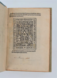TRÈS RARE EDITION POST-INCUNABLE de ce poème de Cleophilus, historien et poète italien mort en 1490, avec des commentaires de l'humaniste Josse Bade. Elle comprend une préface de Josse Bade daté du 7 octobre 1503.