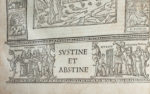 Le reste de l'illustration est copiée sur celle de 1491 et comprend de nombreux bois dans le texte dont 3 grands, un au début de chaque cantique. Le bois qui ouvre l'Enfer est placé dans le même encadrement qui a servi pour le titre mais avec variante dans le décor.