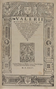 VALÈRE MAXIME. Dictorum ac factorum memorabilium tam Romanorum, quam extremorum Collectanea. …