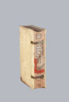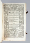PRÉCIEUX EXEMPLAIRE PROVENANT DE LA CÉLÈBRE BIBLIOTHÈQUE PILLONE, EN RELIURE ALLEMANDE DU XVIE SIÈCLE, DÉCORÉ SUR LA TRANCHE LATÉRALE D'UNE IMPORTANTE COMPOSITION DE CESARE VECELLIO REPRÉSENTANT SAINT DENIS L'AREOPAGITE, COIFFE D'UNE MITRE, ÉCRIVANT SUR UN PUPITRE ROUGE.