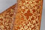 Ce décor particulier, qui rappelle les reliures vénitiennes et romaines à décor d'entrelacs, se caractérise et s'en différencie par l'usage quasi-exclusif qu'il fait de fers foliacés, dessinant ainsi non pas un classique entrelacs de filets ponctués de fleurons, mais une savante et riche composition à larges fleurons contournés. Nous n'avons trouvé aucun autre exemple ni équivalent de ce type de plaques provenant d'ateliers de reliures français.