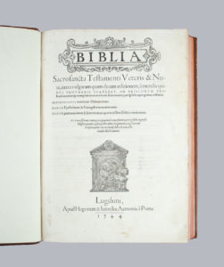 BIBLE. Biblia sacrosancta Testamentis Veteris & Novi. Lyon, [Jean et François Frellon frères pour] Hugues de La Porte & les héritiers d'Aymon de La Porte, 1544. In-folio, veau brun, filets à froid, tranches rouges (Reliure moderne).