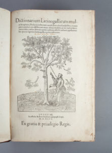 Seconde édition de ce dictionnaire, beaucoup plus ample que l'originale de 1538, imprimée par Robert Estienne dont la très grande et belle marque typographique occupe la page de titre.