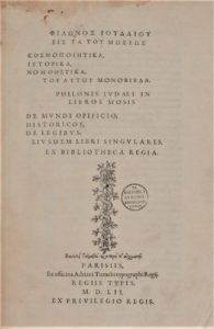 ÉDITION PRINCEPS des textes philosophiques de Philon d'Alexandrie, dit Philon le Juif (Ier siècle de notre ère).