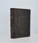 RELIURE ESTAMPÉE DATÉE 1558, ORNÉE D'UN JOLI DÉCOR DE ROULETTES COMPRENANT LES EFFIGIES ALLÉGORIQUES DE LA JUSTICE, DE LA PRUDENCE, DE LA CHARITÉ, DE LA FIDÉLITÉ, DE LA FORTUNE ET DE L’ESPÉRANCE.