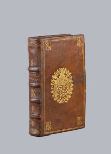 Le dos de la reliure, qui portait pour seule décoration le titre et le chiffre de ce bibliophile, a été décoré au XVIIe siècle d'un petit fleuron répété et d'une palette sur les coiffes.