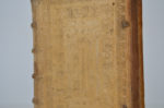 Manquent les 8 feuillets (Declaratio) initialement placés à la suite de la table, sinon PLAISANT VOLUME CONSERVE DANS SA PREMIÈRE RELIURE EN PEAU DE TRUIE ESTAMPÉE DATÉE 1561, dont on remarquera les jolies roulettes ornées de portraits allégoriques des vertus et de saints.