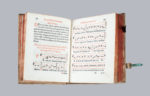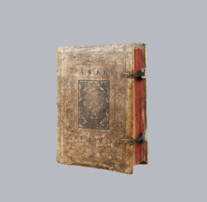 LIBRI AGENDORUM, secundum antiquum usum Metropolitane Salisburgensis Ecclesiae… Pars secunda. Salzbourg [Dillingen, Excudebat Sebald Meyer], 1575. In-4, peau de truie estampée à froid sur ais, encadrement orné de multiples filets et de roulettes, plaque imprimée en noir sur le premier plat, avec, au-dessus la mention ISAK et au-dessous la date 1599, petite plaque historiée au centre du second plat, fermoirs, dos à nerfs, tranches rouges (Reliure de l'époque).
