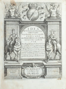 SAAVEDRA FAJARDO (Diego de). Idea de un principe politico christiano. Munich, s.n., mars 1640, et à Milan, avril 1642. In-4, vélin ivoire, dos lisse portant le titre à l'encre, tranches lisses (Reliure de l'époque).