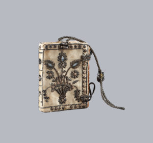 RAVISSANTE RELIURE EN SOIE A DÉCOR BRODE DE FILS D'ARGENT.