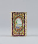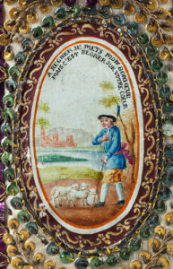CHARMANTE RELIURE DE SOIE BRODÉE ORNÉE DE DEUX PEINTURES A LA GOUACHE d'inspiration pastorale et d'une grande fraîcheur.