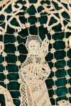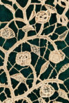 Paroissien Romain contenant les Épîtres et Évangiles de tous les dimanches de l'année. Tours, Alfred Mame, 1909. In-12, velours vert recouvert d'une fine dentelle de fil blanc à l'effigie de sainte Geneviève, un fuseau dans la main et gardant ses moutons (premier plat), et de branches de roses sur le second, tranches dorées, étui (Reliure de l'époque).