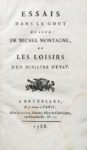 [ARGENSON (Marquis d')]. ESSAIS DANS LE GOUT DE CEUX DE MICHEL MONTAGNE, OU LES LOISIRS D'UN MINISTRE D'ETAT.