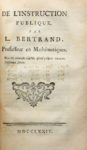 Relié à la suite : BERTRAND (L). DE L'INSTRUCTION PUBLIQUE. Sans lieu ni nom, 1774. [4]-84 pages. Reliure usagée avec petits manques.