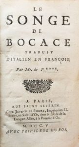 [BOCCACE PREMONT]. LE SONGE DE BOCACE. Traduit d'italien en français. Paris, Jacques le Febvre, …