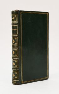Florence, sans nom (Genève, Cazin), 1784. Petit in-16 de [6]-164 pages, veau vert émeraude, filets dorés sur les plats, dos à nerfs orné, dentelle dorée intérieure, gardes de tabis rose, tranches dorées (reliure du XIX°).