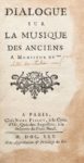 [CHÂTEAUNEUF (Abbé François de)]. DIALOGUE SUR LA MUSIQUE DES ANCIENS. Paris, Noel Pissot, …