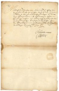 Catherine de MÉDICIS (1519-1589) Reine de France, femme d'Henri II, mère de François II, Charles IX et Henri III. L.S. avec compliment autographe « Vre bonne cousine Caterine », château de Boulogne 27 juin 1572, au duc de LONGUEVILLE, gouverneur et lieutenant général en Picardie ; demi-page in-fol., adresse au verso.