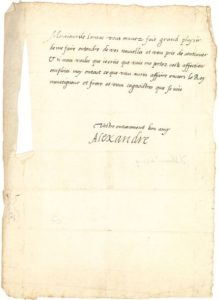 HENRI III (1551-1589) Roi de France. L.A.S. « Alexandre », [vers 1559-1560], à M. de LANSAC ; demi-page in-fol. à l'encre brune séchée à la poudre d'or, adresse au dos.