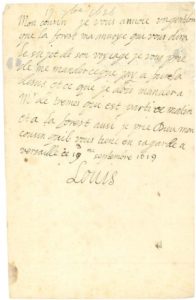Louis XIII (1601-1643) Roi de France. L.A.S., Versailles 19 septembre 1619, au cardinal de RICHELIEU ; ¾ page in-4, adresse au verso «A Mon Cousin le Cardinal de Richelieu» avec traces de cachets de cire rouge.