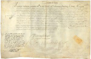 Paris 22 janvier 1644, brevet de nomination de François Petit comme son médecin ordinaire (contresigné par Guénégaud). Saint-Germain en Laye 4 avril 1682, à M. de Bornay Blanot, convocation aux états du duché de Bourgogne et comté d'Auxerre (contres. par Phelypeaux). Versailles 31 août 1699, au marquis de La Chastre, pour recevoir le lieutenant Maubranche dans son régiment (contres. par Le Tellier).