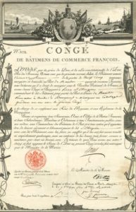 Fontainebleau novembre 1776, exemption de droits pour 4000 quintaux «de plomb d'Angleterre en saumons» entreposés à Nantes «pour être employé au service de Sa Majesté dans ses Colonies de l'Amérique». - 1792 (en-tête Congé de bâtimens de commerce françois, avec grande vignette et encadrement gravés aux emblèmes de la Marine), congé et passeport pour le vaisseau L'Aimable Jeanne de Nantes.