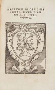 IRNAEO. Encomium Franciæ. Argentorati, Cratonem Mylium, 1539. 28pp, [2]ff.