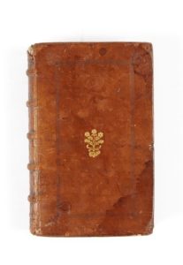 Liber psalmorum Davidis. Annotationes in eosde[m] ex Hebræorum commentariis. Lutetiae, Ex officina Rob. Stephani, 1546. 1 vol. in-8. Plein veau d'époque, décor doré orné d'un bouquet floral tenu par une main au centre des plats, triple filet à froid en encadrement avec fleuron d'angle, dos à nerfs, fleurons dorés (dont fleur de lys) dans les caissons, décor en croisillon à froid en tête et pied de dos. 232ff, 24ff.