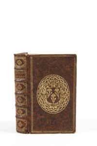 [MÜLLER, Johannes]. In C. Julii Caesaris dictatoris viri disertissimi, et Auli Hirtii, feu Oppii, Commentaria de bello Gallico, Civili Pompeiano, Alexandrino, Africano, & Hispaniensi, annotationes Io. Rhellicani Tigurini. Baliseæ, Hieronimum Curionem Men, 1543. 1 vol. in-12. Plein veau d'époque, triple filet doré encadrant les plats, armes centrales dorées, dos à nerfs orné, titre doré. [26]ff titre et Index, 333pp ; [6]f ; 171pp, [2]pp.