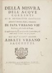 CASTELLI, Benedetto. Della Misura dell'acque correnti. Abbate Urbani Sacchetti. Bologne, H. H. del …