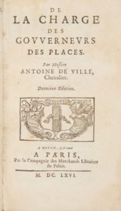 DE VILLE, Antoine. De la charge des gouverneurs des places. Dernière édition. Rouen, Paris, par …