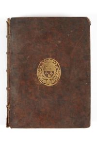 Livre de prix attribué à Antoine Joseph Cartier, en 1752, avec une étiquette collée sur le contreplat supérieur, portant en tête les armes répétées sur les plats : “Ex munificentia prætoris, proprætoris, consulum, ædilium que urbis et civitatis Laudunensis...” > Exemplaire aux armes de la ville de Laon. “Laon, qui remplaça l'ancienne Bibrax, ne fut à l'origine qu'un château.”