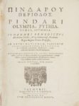 Impression latine et grecque traduite et commentée par Johannes Benedictus. Il s'agit de l'une des plus importantes éditions du début du XVIIe siècle de Pindare. “Le texte est celui de l'édition de Schmid (1616), avec quelques corrections, mais la version latine est refaite et accompagnée d'un bon commentaire.” (Brunet, IV, 659).