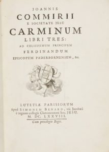 Joannis commirii e societate Jesu Carminum libri tres. Lutetiae Parisiorum, Simonem Bernard, 1678. …