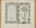Ravissant livre de prières, entièrement gravé par Pierre Moreau. Chaque page présente une élégante calligraphie mêlant écriture cursive et ornements, dans des encadrements variés. Une page de titre et 30 gravures figurant le Christ en croix, la Vierge, les sept péchés capitaux, des motifs floraux, les armes royales.