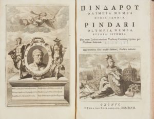 PINDARE. Pindari olympia, pythia, nemean isthmia. Oxford, Etheatro Sheldoniano, 1697. 1 vol. …