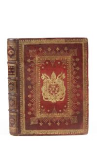 [RELIURE AUX ARMES PONTIFICALES]. Leges prudentiæ episcopalis ad optimum ecclesiæ regimen indictæ. A Iosepho Maraviglia episcopo novariensi, &c. Atque Beatissimo patri Innocentio XI. Pont. Opt. Max. dicatæ. Augustæ Taurinorum, Typis Bartholomæi Zappatæ, 1678. 1 vol. in-4. Plein maroquin rouge, armes papales dorées au centre des plats, large décor d'encadrement en partie en pointillé ainsi que d'une frise florale, dos à nerfs orné, titre doré, tranches dorées, roulette dorée intérieure et sur les coupes.  > Exemplaire aux armes du pape Innocent XI, dédicataire de l'ouvrage.  Une note manuscrite ancienne l'indique : «Ce volume a appartenu au Pape Innocent XI à qui l'ouvrage est dédié. Ses armes ornent la reliure du livre et se trouvent aussi sur le titre».