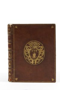 [TRAITÉS DE PAIX]. Traité de paix entre la France et la Savoye. Conclu à Turin le 29 Aoust 1696. Paris, Imprimerie Frederic Leonard, 1697. 1 vol. in-4. Plein Veau glacé d'époque, armes dorées au centre des plats, triple filet d'encadrement doré, fleurons d'angles, dos à nerfs orné, pièce de titre et date de maroquin rouge, armes au dos, tranches dorées. 15pp, [1]p ; 32 pp ; 16 pp ; 52 pp ; 46 pp.