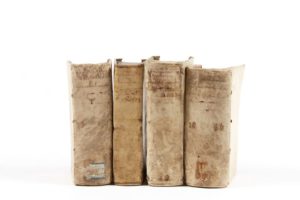 WERDENHAGEN, Johann Angelius von. De rebus publicis Hanseaticis et earum nob. confœderatione Tractatus specialis. Leyde, Maire, 1631. 2 tomes en 4 vol. in-18. Vélin d'époque dont 2 à recouvrement.