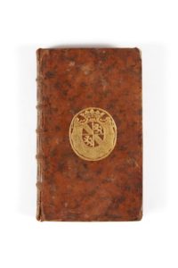 [DUREY DE SAUVOY, Jos. Marquis du terrail]. La Princesse de Gonsague, roman historique. La Haye, 1756. 2 parties en 1 vol. in-12. Plein veau d'époque, armes dorées au centre des plats, dos à nerfs orné d'un lion doré dans les caissons, pièce de titre de maroquin rouge. 189pp ; 143pp.