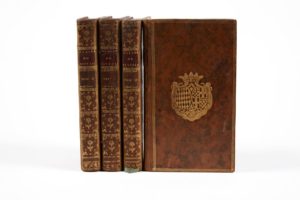 Quelques coins usés, t. 1: galerie de vers au dos et aux mors, portrait-frontispice en partie détaché, t. 2 : feuillet de faux-titre manquant, t. 4 : mouillure inférieure en début de volume.