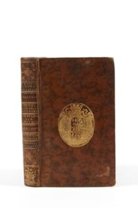 [RECUEIL DE 9 TEXTES] - [PALISSOT] Petites lettres sur de grands philosophes. Paris, 1757. 1 vol. in-12. Veau d'époque, dos à nerfs orné, large pièce de titre de maroquin brun, armoiries en queue de dos. [1f, IVpp, 101pp ; 69pp ; 123pp ; 8pp ; 33pp ; Titre, 56pp ; 8pp ; 15pp.