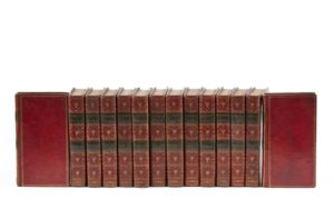 CICERON. M. Tullii Ciceronis opera. Recensuit J. N. Lallememand. Paris, Saillant, Desaint, Barbou, 1768. 14 vol in-12. Plein maroquin rouge vermillon, triple filet doré sur les plats, dos à faux-nerfs orné, pièces de titre et de tomaison de maroquin vert, tranches dorées.